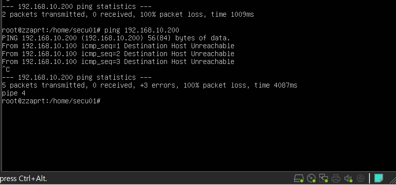 아까는 정상적으로 통신이 됐다. 이제 다시 vmnet을 host-only로 구성하고 vlan.10의 vm을 구성하고 ping을 보내보겠다.