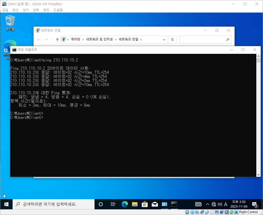 아까와는 다르게 210.110.10.1의 IP로 NAT가 된 것을 확인할 수 있다. 쨘