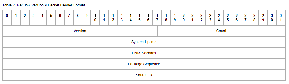 | v9 | 템플릿 기반이며, (2009년 기준) 일부 최신 라우터에서 사용할 수 있습니다. 주로 IPv6, MPLS 또는 BGP 넥스트홉을 사용하는 일반 IPv4와 같은 흐름을 보고하는 데 사용됩니다. |