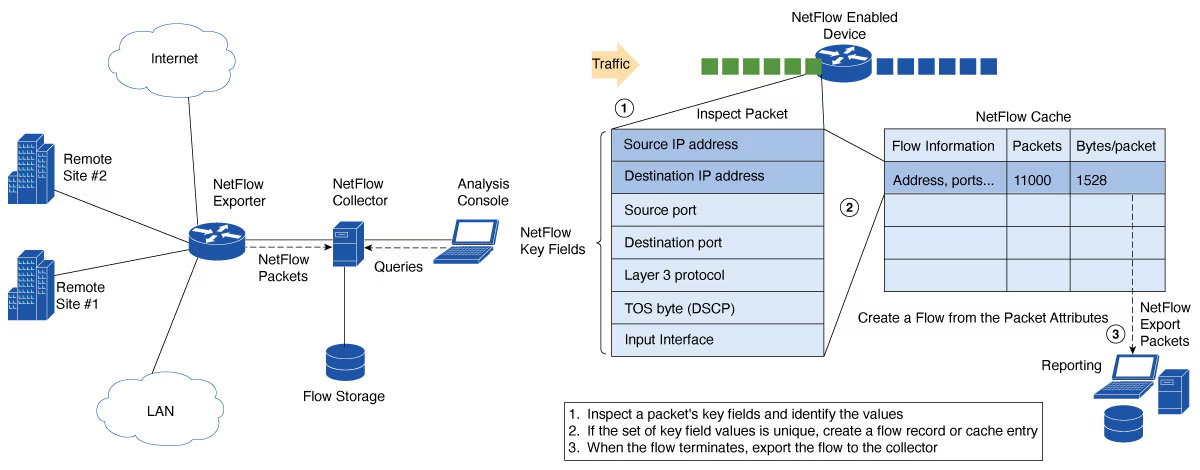 그러나 Netflow를 통해 어디서 누가 얼마나 트래픽을 발생 시키는지 구분 가능하며 수집한 데이터를 압축하여 원격 서버로 전송이 가능