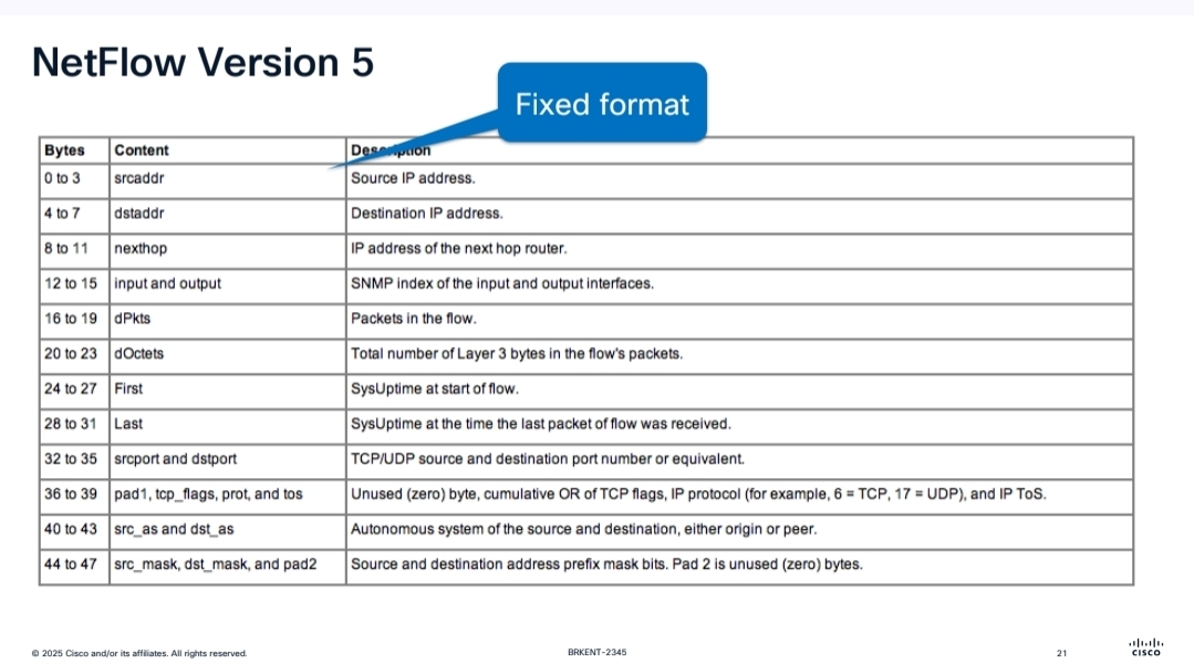 | v7 | 소스 라우터 필드가 있는 버전 5와 유사합니다. 시스코 카탈리스트 스위치에서만 사용되는 것 같습니다. |
