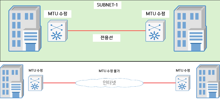 전용선이 연결되는 구간에서는 MTU의 수정이 가능하겠지만, ISP가 소유하는 WAN 구간을 지날 땐 MTU를 수정할 수 없으므로 데이터 DROP이 발생할 수 있다.