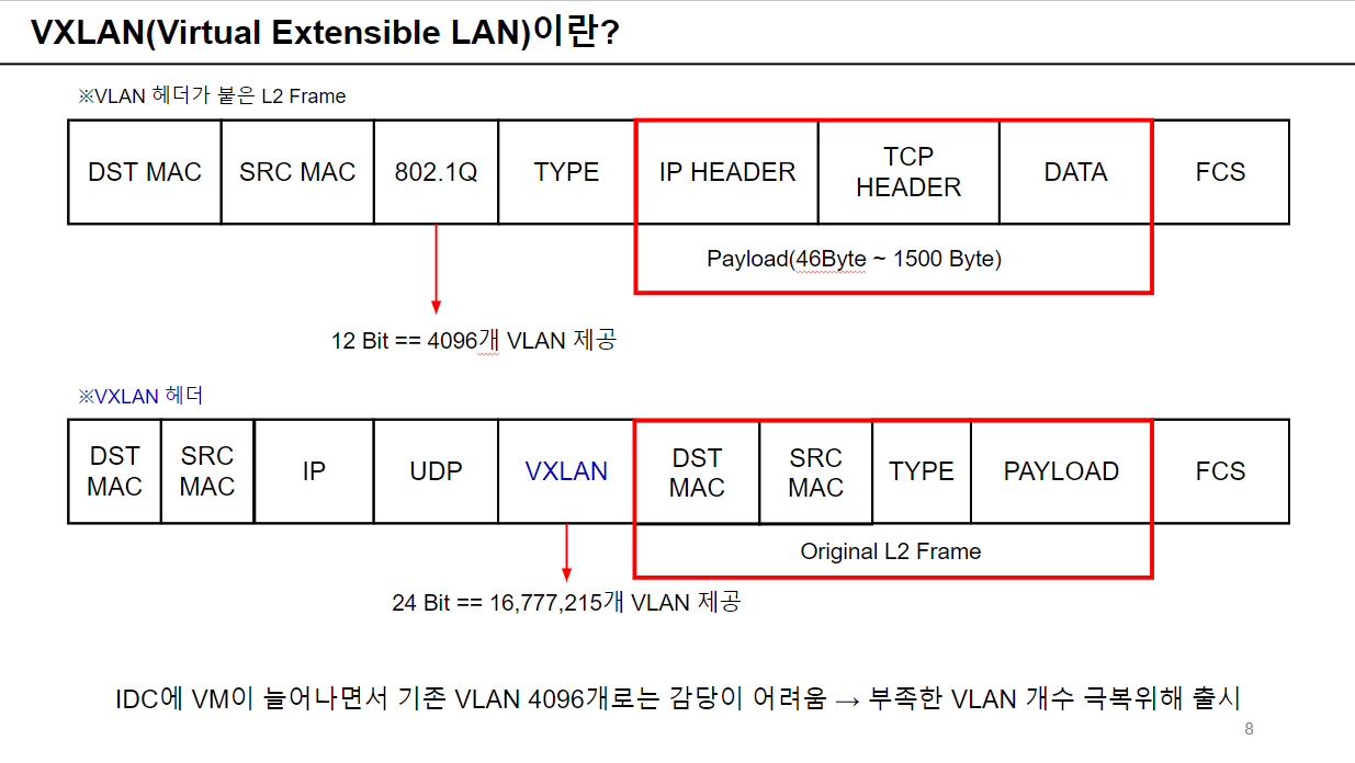 VXLAN은 Virtual Extensible LAN으로 VLAN의 갯수가 부족하여 등장했다.