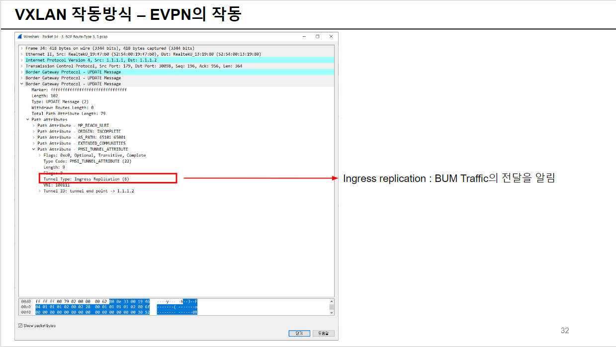 따라서 L3 구간에서는 UNICAST로 변환되어 VTEP들에게 전달된 후 브로드캐스트로 변환된다.