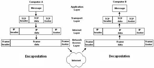 그냥 위 계층의 내용을 알기위해 데이터 앞에 헤더를 씌운다고 생각하면 됩니다. 다시 역캡슐화 과정에선 이것을 하나 하나 벗겨 가면서 높은 계층으로 올라가는 것입니다. 더 자세한 내용은 이더넷 프레임 헤더 같은거 같이 찾아보시면서 보는 것을 추천 드립니다