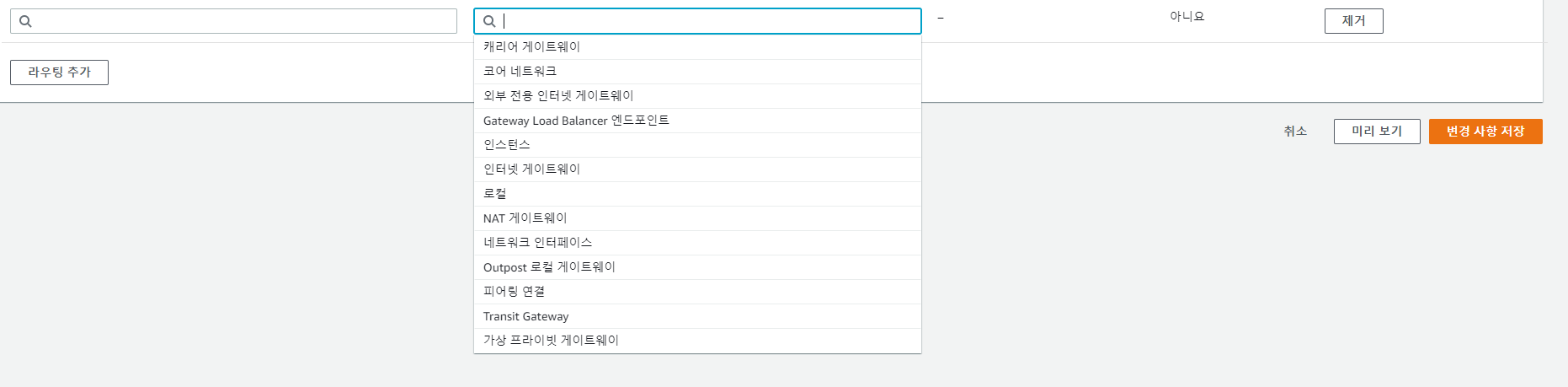 이 라우팅 테이블을 어떻게 추가하냐에 따라서 연결하는 구조가 바뀝니다.