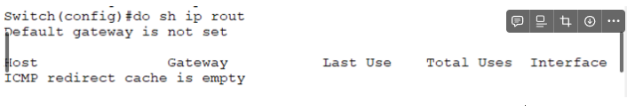 ip routing을 입력해주지 않으면 L3로 동작하지 않기 때문에 라우팅 테이블이 생성되지 않는다.